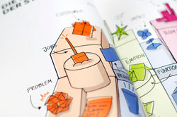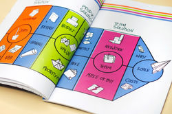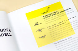 Passend zum Thema sind die Zeichnungen minimalistisch gehalten. Genauso, als würde man auf Post-Its schreiben, bzw. Ideen entwickeln. Alle abgebildeten Icons sind ebenfalls Post-Its in gefalteter Form. Der Flieger, das Hemd, Geldscheine, Schiff, Stern, uvm.