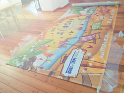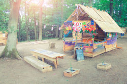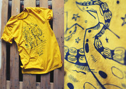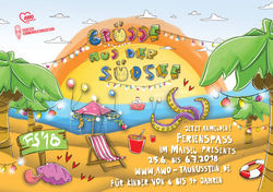Eine großartige Zeit geht leider wieder viel zu schnell zu Ende. Der Ferienspass 2018 hat lange auf sich warten lassen und ist nach zwei unglaublichen Wochen schon wieder vorbei. Auch in diesem Jahr sind wieder viele Drucksachen, Zeichnungen, digitale Erzeugnisse und natürlich auch viele schöne Hütten enstanden. Thema 2018: "Ab in die Südsee". Gestalterisch wurde hier alles zum Thema angepasst. Einige Symphatiefiguren finden sich in den unterschiedliche Drucksachen wieder, Krake, Muschel, Schiff, usw. Alles ist auf zeichnerischer Basis entstanden, grafische Darstellungen werden lediglich für die Typografie verwendet, wobei diese zudem auch eigens angefertigt ist. Im einzellnen sind die Erzeugnisse in diesem Jahr: gewebte Festivalbänder, Plakate, Flyer, T-Shirts, Bauzaunbanner, viele digitale Werbemaßnahmen und eine Tikibar aus Holz und Nägeln, weg von Schreibtisch und Bildschirm – ab in den Wald mit Hammer, Brettern und Nägeln! Die Hütte wurde mit den Kindern zudem bunt gestaltet, bemalt und dekoriert. Ausserdem gab es dieses Jahr 2 T-Shirt Motive, ein allgemeines "Motto Shirt" und ein "Ferienspass Team Shirt", alle Motive wurden im Siebdruck aufgebracht, wahlweise in schwarz und weiß.