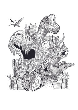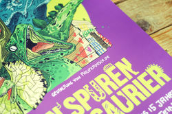 Um das Gefühl aller Ehrenamtlichen und selbstverständlich auch der Kinder und deren Eltern richtung Jura-, Kreidezeit und Co. zu lenken, kommen uns auf dem Hauptmotiv brüllende Dinosaureier entgegen und dazwischen verstecken sich jede Menge Ferienspaß-Hütten. Nämlich genau die Hütten, die mit den Kindern vor Ort im Wald gebaut werden. Sie sind bunt, schepp und dazu echte kleine Kunstwerke, die nach 2 Wochen leider wieder abgerissen werden. Auf diese Weise wird der Ferienspaß als realer Ort mit der Welt der Dinosaurier verschmolzen und wer weiss, vielleicht läuft uns dort ja tatsächlich ein Dino über den Weg. :)