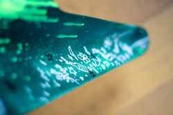 Dieser ursprünglich graue Plastikstuhl wurde recycelt – vom Müllhaufen gerettet und in ein neues Gewand gesteckt. Mit Sprühlack, Pinseln und ein paar Permanentmarkern aus dem Baumarkt, kann man sich ein schönes und einzigartiges Möbelstück für zu Hause schaffen. Ein guter Kontrast zwischen flächigen Farbebenen in der Wohnung bzw. ein super farblicher Akzent und zudem ein Stück Garten, das uns im Wohnzimmer von nun an begleitet.